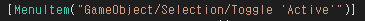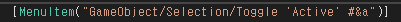 그리고 인스펙터에서 게임 오브젝트를 켜고 끌 수 있는 단축키인